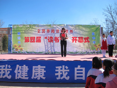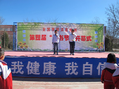 农大附中盛乐学校“?全营养阅读——看世界”第四届读书节开幕式于3月23日上午在校园内隆重举行。在灿烂的阳光下,在明朗的蓝天下,主持人用饱含激情的声音宣布读书节活动正式开幕,顿时,同学们的脸上洋溢起了欢快的笑容。紧接着由王丽枝校长作了读书节开幕式致辞,她饱含激情地向全体师生发出了倡议,希望大家将读书作为自己学习生活的重要组成部分,让书香洋溢校园。