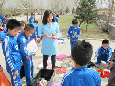 ?4月16日,农大附中盛乐学校第四届“让我们的产品进市场”活动如期举行,活动本着“你的多余,我的需要”的理念,激发同学们参与活动的热情,以班级为单位,每班由同学们自己设计展板,内容包括宣传理念、公司名称、商品介绍、广告用语等。有些同学还采用了有奖行销、买一送一、限时秒杀的经营策略,为同学们提供了展示自我、相互交流的平台。