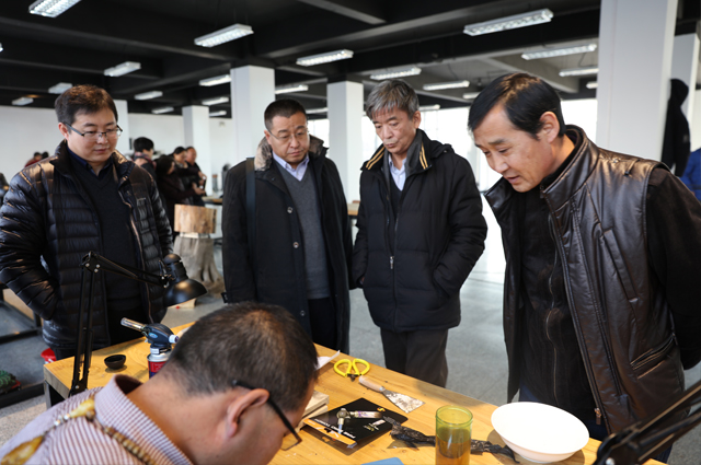 国家文化部民族民间文艺发展中心主任李松,文化寻力项目管理办公室主任、TBI国际教育集团副总裁王学文等来宾观摩了《中国非物质文化遗产传承人群研修研习培训计划—蒙古族金银铜器制作技艺培训班》实践课。