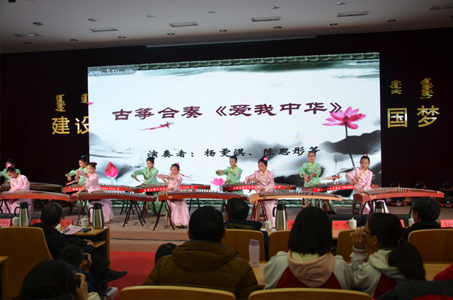 授牌仪式上,我校学生表演了蒙古族顶碗舞、葫芦丝和古筝齐奏等校园传统文化特色节目。
