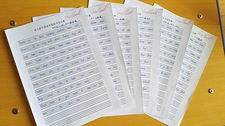 为了进一步规范英语的书写要求,培养良好的书写习惯,加强英语的学习兴趣。我校第十六届英语节之英语书写大赛于2017年3月27日至3月29日在三至六年级隆重举行。各年级教师集体组织认真选定书写内容,在各自所带班级随堂开展了此项活动。这次比赛以班级为单位进行评比,以短文抄写为比赛内容,统一用四线格抄写。学生们可以做到字母书写标准,字迹流畅端正,卷面整洁漂亮,令人赏心悦目。各班分别评选出了一等奖2人,二等奖3人,三等奖5人。获奖的作品展示在各班走廊过道,其他同学的作品展示在班级中,供同学们学习欣赏。